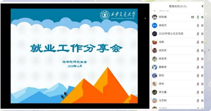 2020年6月20日晚,九游官方网站/app/ios/安卓/在线/注册举办了就业工作分享会,邀请了九游官方网站/app/ios/安卓/在线/注册晋瑞、徐佳文和熊晓林三位成功签约心仪就业单位的毕业生在线分享就业经验,为与会的40余名研究生悉心提供就业、实习建议,耐心答疑解惑。在抗击疫情常态化背景下,这些就业经验分享能够帮助学生提早知悉就业流程,统筹就业时间安排,把握就业过程加分项,顺应经济发展态势,规划未来职业方向。本次分享会由九游官方网站/app/ios/安卓/在线/注册研究生会邢贺通主持。
