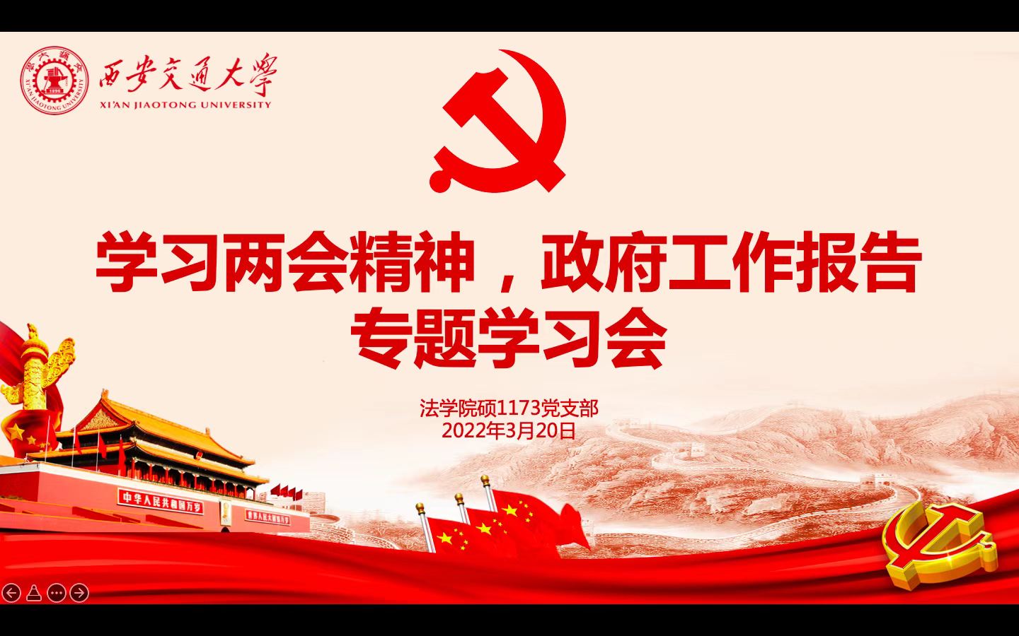 2022年3月20日九游官方网站/app/ios/安卓/在线/注册硕1173班举办了主题为学习“两会“精神,坚定发展信心的专题学习会议,由于疫情的影响,本次专题学习会议仍然采用线上的方式进行。本次会议由党支部书记张一凡主持,党员及入党积极分子总共32人参与会议。