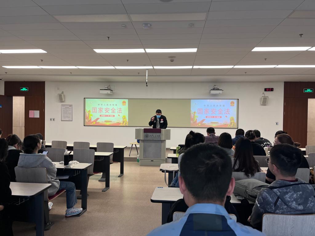 4月12日,硕1172、硕1173团支部联合开展 “坚持总体国家安全观,共同维护国家安全”主题团课,由团支部书记张一凡、牛竞苒主讲。